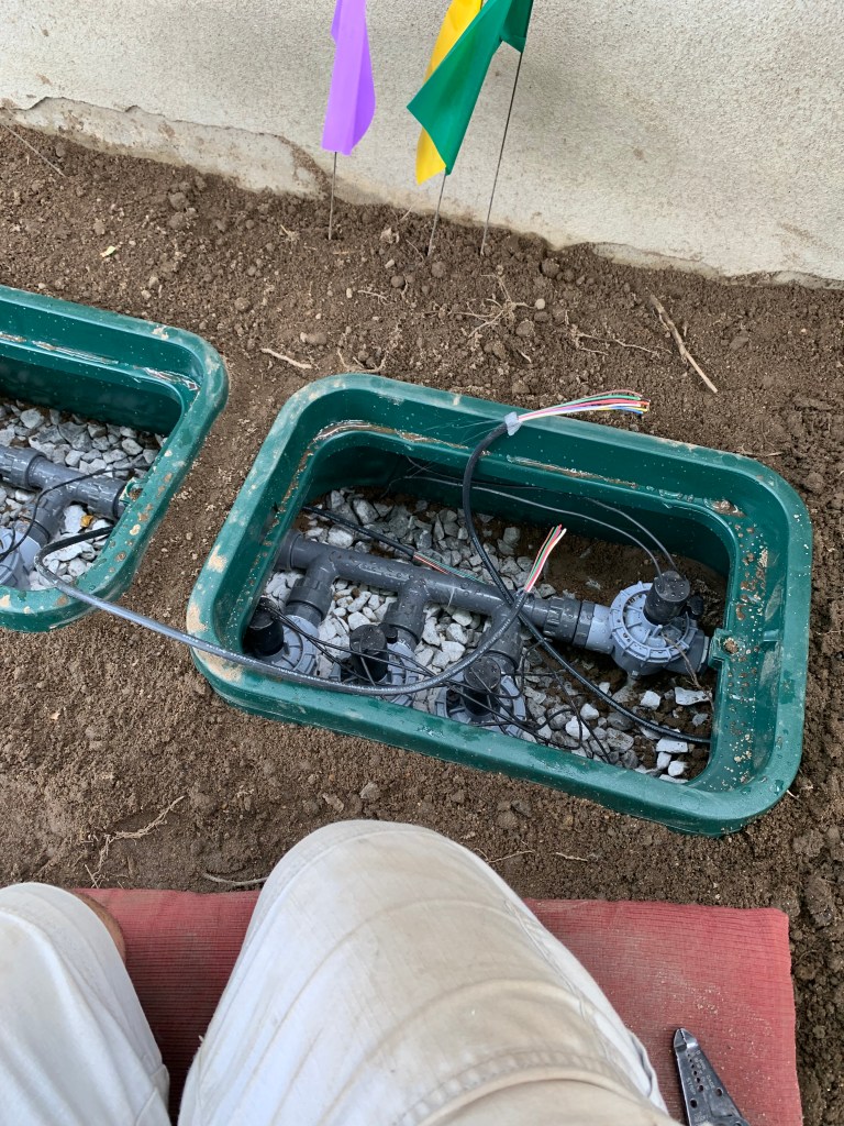 Une fois les tuyaux passés sous le gazon, des jonctions seront faites pour alimenter les différentes zones.
